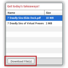 In Adobe Connect, make sure you’ve placed it in the File Share Pod. To ensure the takeaway is correct, highlight the file then click “Download.”