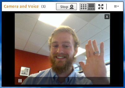 - If your audio is good, test your webcam to make sure the connection is strong and glitch-free. After you’ve tested your webcam, don’t stop sharing quite yet. Have your speaker smile for the camera, then pause their webcam. Doing so places a friendly face in your Lobby!